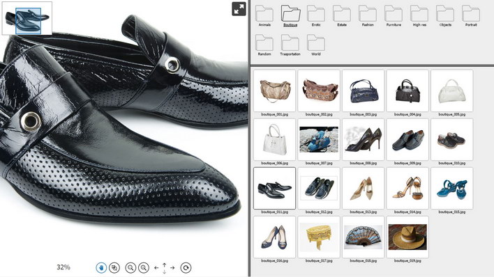 In this example several images from different location are passed to the $.axZm.thumbGallery over "zoomData" option. The plugin generates a grid of thumbs next to AJAX-ZOOM player instantly. It is also possible to load images from a folder. When clicked on the thumbs images in the player are switched to the selection.